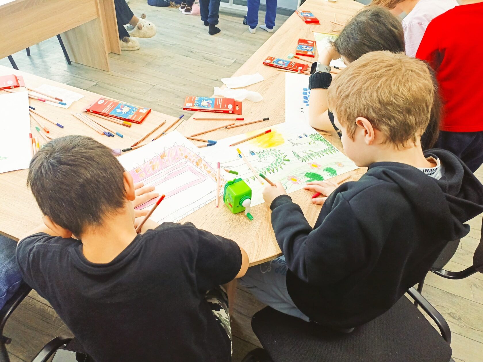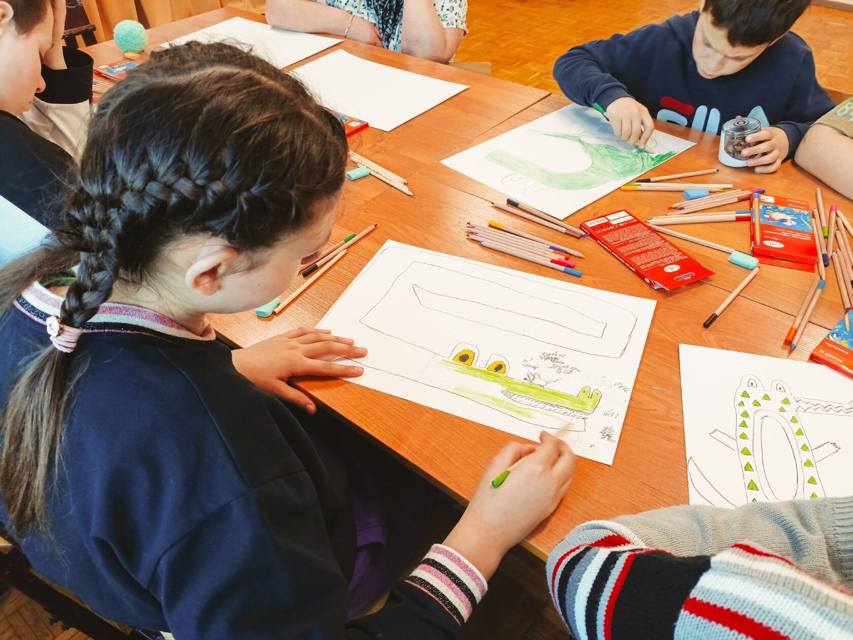 В ходе занятия обсуждалось понятие «внутреннего крокодила» – той части личности, которая отвечает за защиту, силу и напористость. Дети делились своими мыслями о том, когда уместно проявлять эти качества, а когда лучше сдержаться. Особое внимание уделялось тому, как важно осознавать свою силу и использовать ее во благо, не причиняя вреда окружающим. Рисование крокодила стало для ребят способом визуализировать и проработать свои эмоции, связанные с чувством уверенности, страха и защиты.