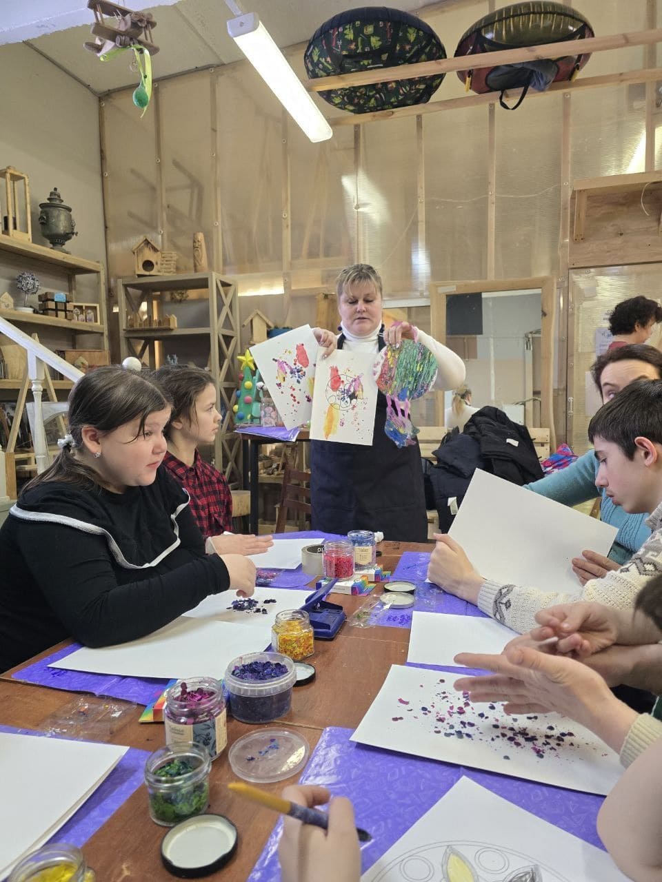 07.02.2026 г. состоялась завершающая встреча четырехнедельного интенсива «Путь к себе. Сила воображения» с ребятами, посещающими Центр поддержки семей с детьми с особенностями развития «Мудрая Сова» в г. Раменское Московской области. Арт‑терапевт и педагог ИЗО и ДПИ, работающая с детьми и взрослыми, Семенова Галина Александровна провела серию авторских арт-терапевтических занятий с акварелью и восковыми мелками. Шаг за шагом участники учились распознавать свои эмоции, работать со страхами, налаживать эмоциональный контакт и выстраивать доверительное взаимодействие друг с другом. В результате многие отметили снижение тревожности и появление спокойствия и уверенности.