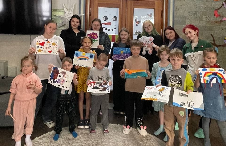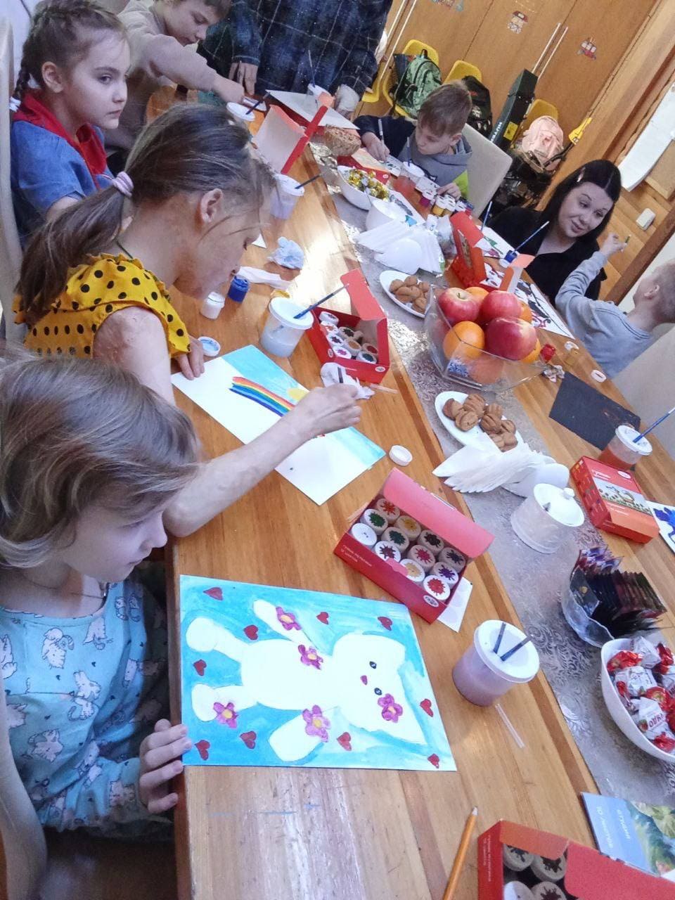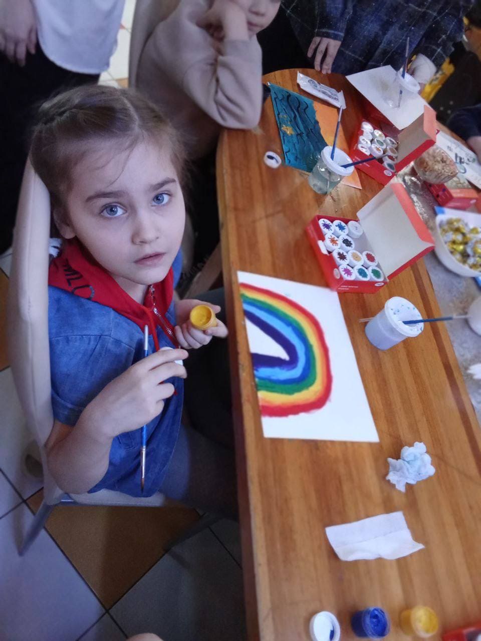 На этот раз ребята рисовали на свободную тему и использовали технику арт-терапии: создание текстурных картин. Получились очень интересные и душевные работы, которые теперь украшают стены детского центра.