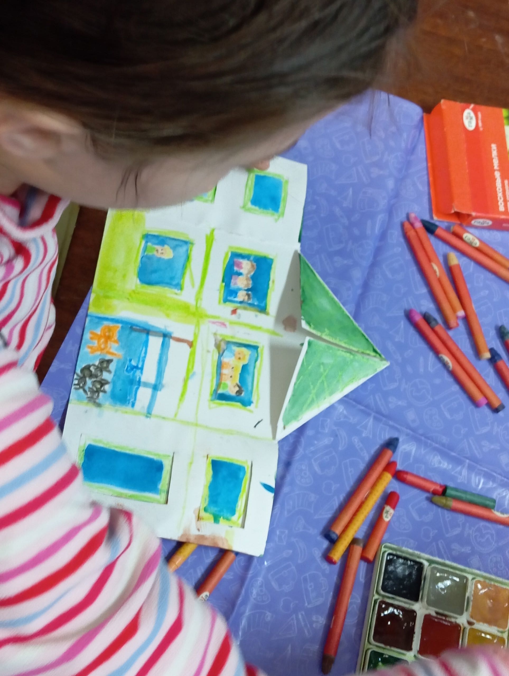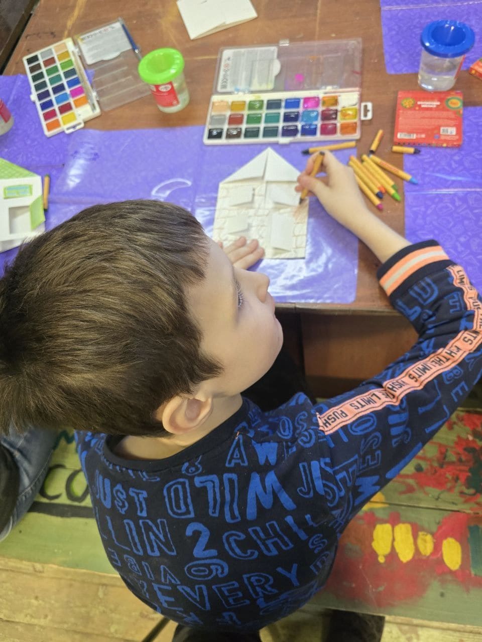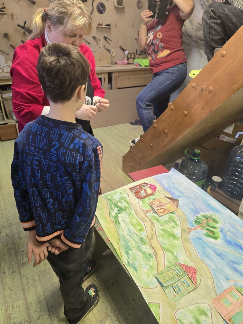 На этом мастер-классе ребята учились распознавать и называть эмоции – первый шаг к тому, чтобы ими управлять; создавать образ «места силы» — визуальная опора снижает тревогу и даёт ресурс для самоподдержки; использовать символы, цвет и язык тела как инструменты выражения, когда слова не помогают. Дети пробовали работать в группе: из индивидуальных картин родилась общая «деревня» поддержки — пример того, как творчество укрепляет связь и эмпатию. Было видно, как у ребят менялось настроение в ходе занятия: от сосредоточенности к радости и гордости — это важная часть обучения эмоциональной грамотности. А главное – результат работы остаётся с участником: рисунок уходит домой как практическое напоминание о запасе спокойствия.