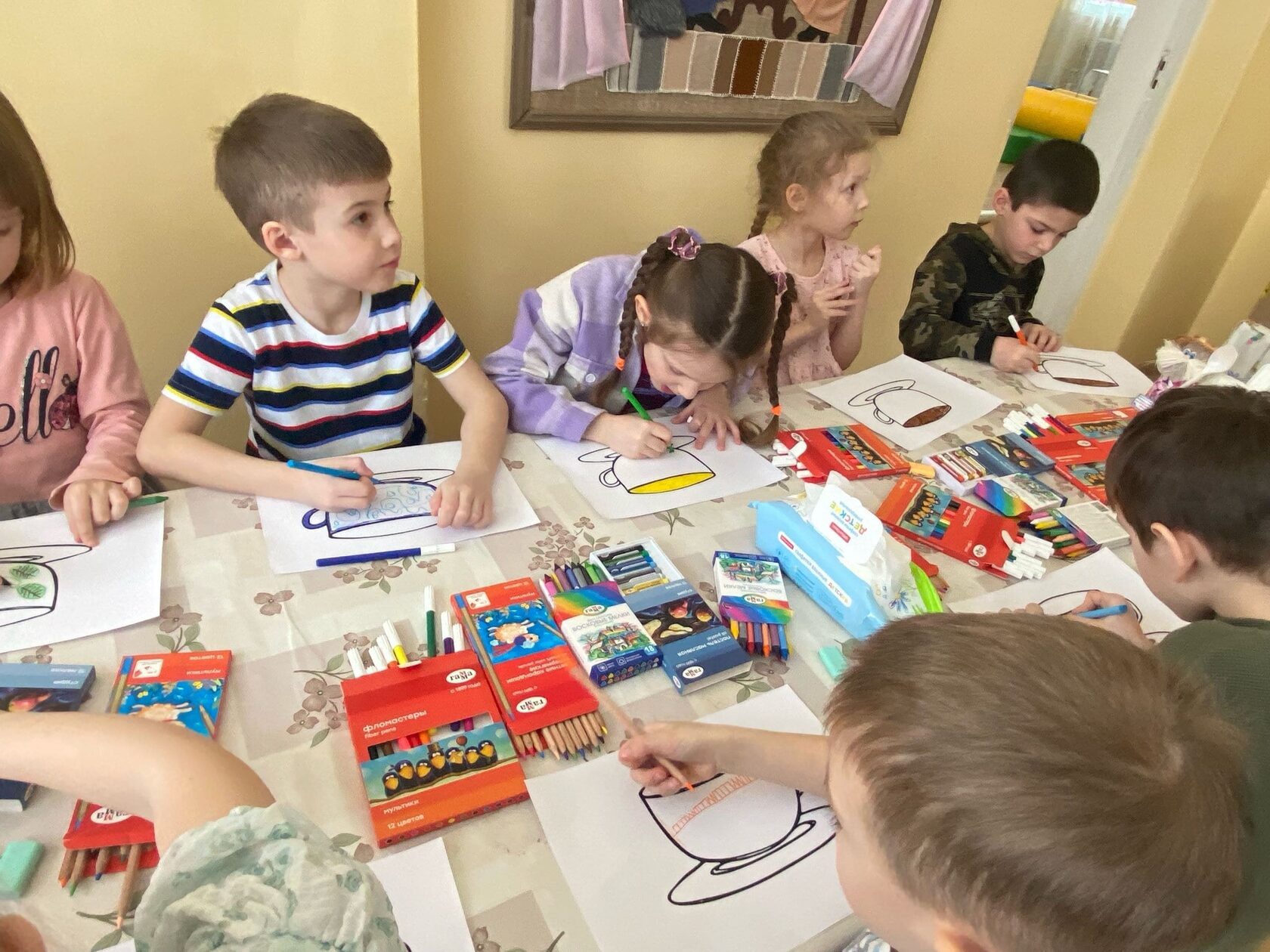 Таким образом, урок помог научиться ощущать чувство принадлежности к семье, поддержать семейные традиции совместных чаепитий, развить творческие способности и художественный вкус маленьких художников, повысить уровень уверенности в себе.