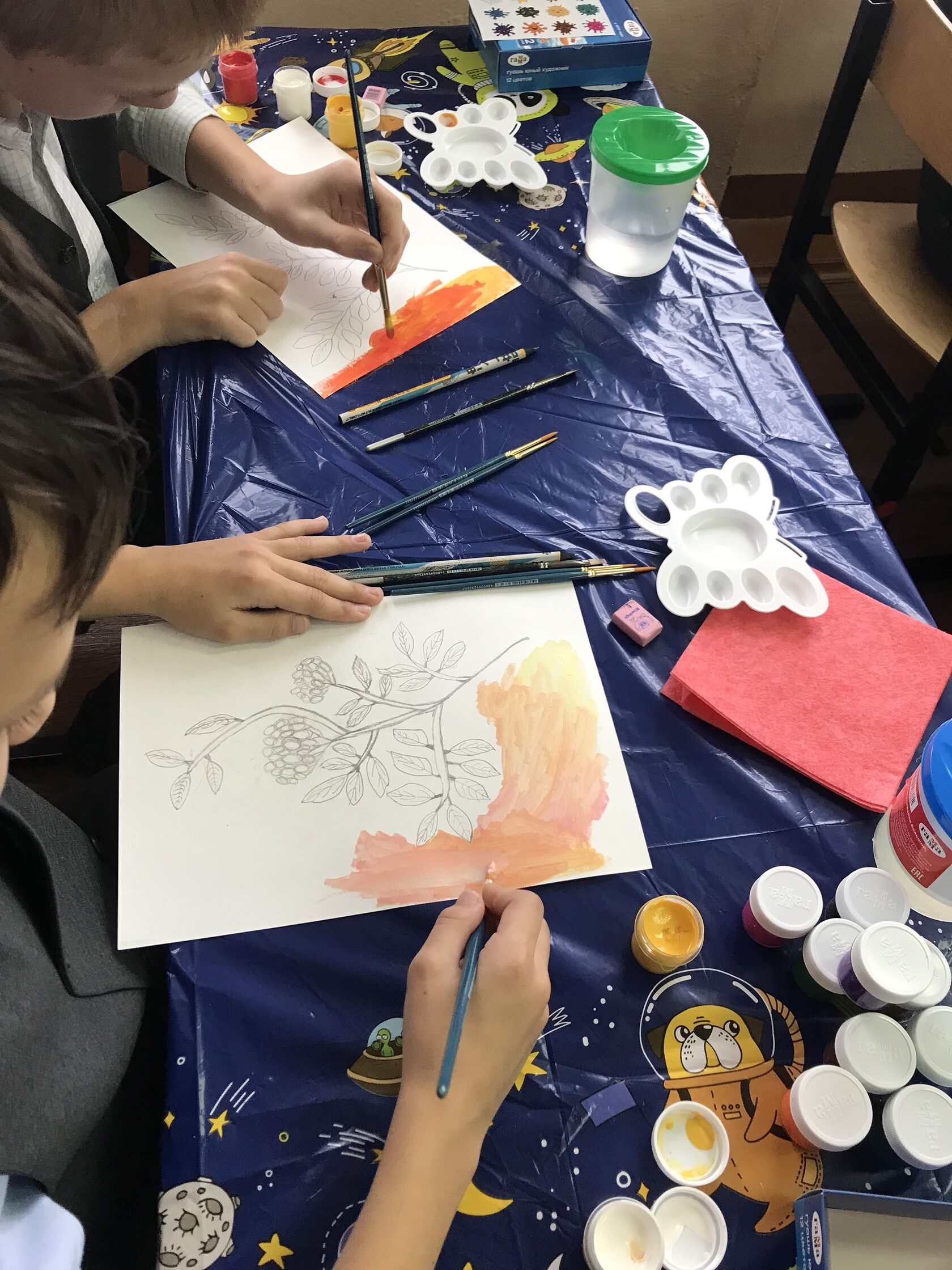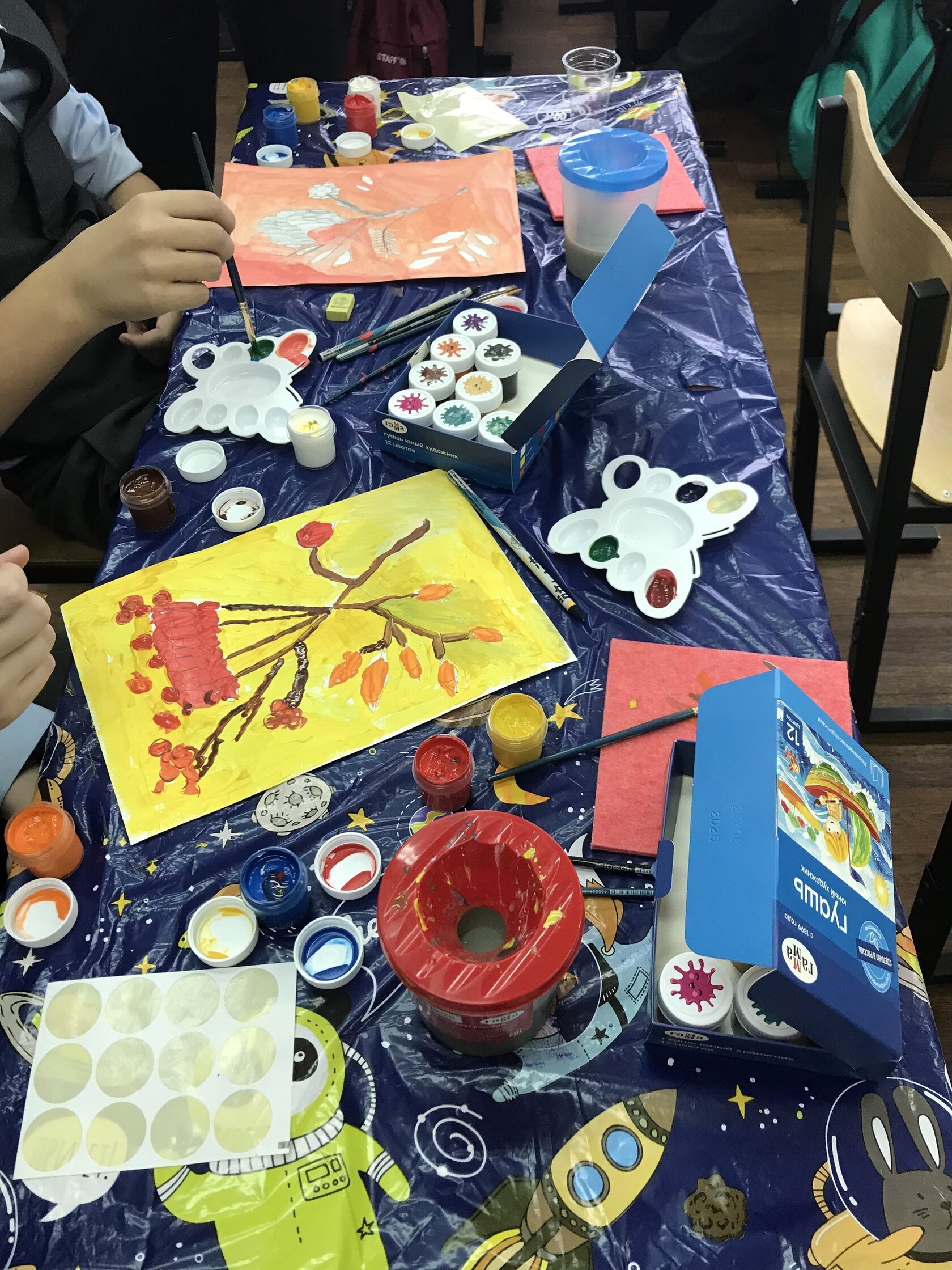 На этом мастер-классе, подготовленном и проведенном педагогом Семеновой Татьяной, закончившей Рязанское художественное училище им. Г.К. Вагнера, у детей было увлекательное занятие по рисованию гуашью, посвященное осени. Ученики с большим вдохновением создавали рисунки, изображая веточку рябины.