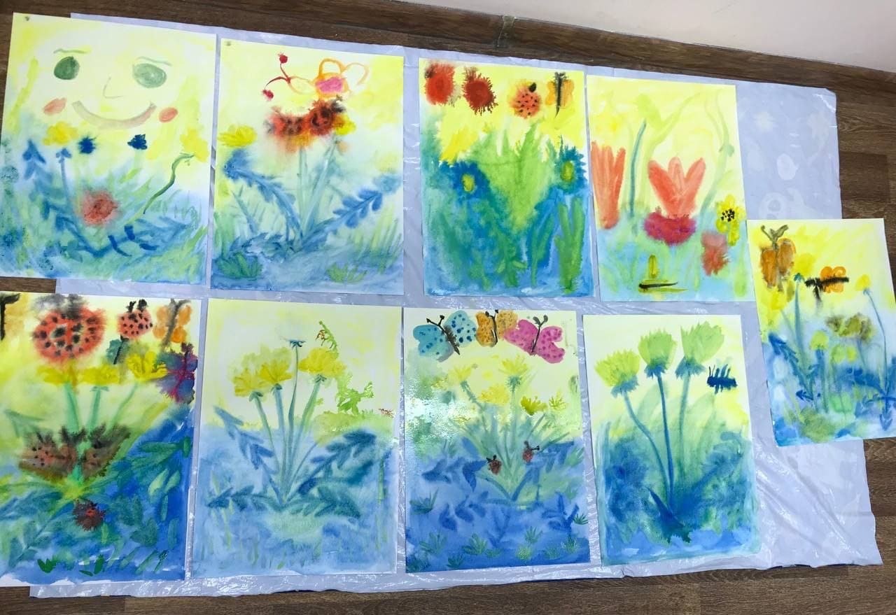 Детские работы получились воздушными и легкими, в которых нет застывшей формы! Делимся фотографиями с мастер-класса и весенним пробуждением природы!