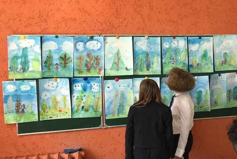 Вместе с педагогом Натальей Терской, профессиональный стаж деятельности которой 35 лет, разработавшей собственную методику в обучении детей - технику «мокрым по мокрому», школьники занимались акварельной живописью на тему «Лето».